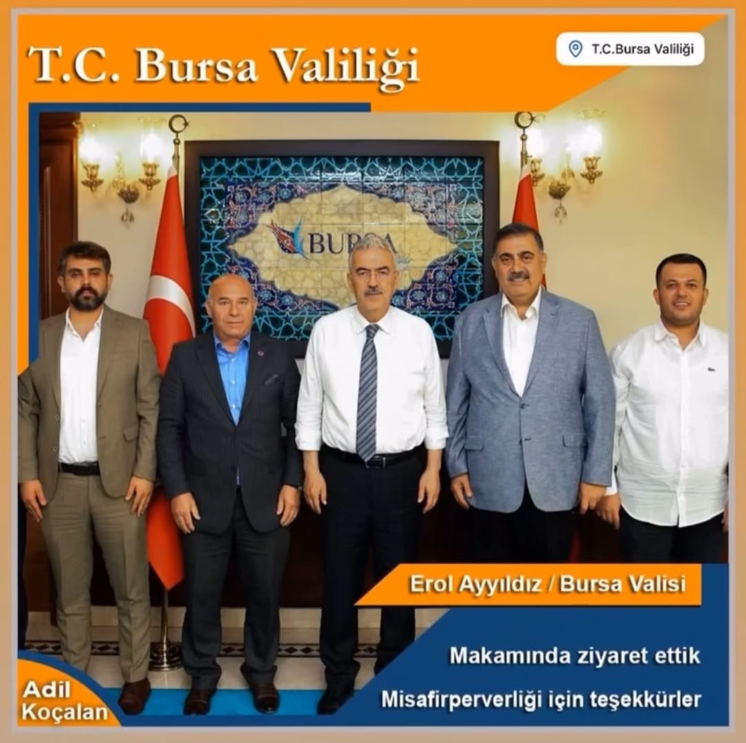 Ziyaret sonrası Adil Koçalan şu sözlere yer verdi: ”Bursa Valimiz, kıymetli dostumuz Sayın Erol Ayyıldız’ın misafiri olmanın onurunu yaşadık. Gösterdiği samimi misafirperverlik bizleri mutlu etti. Böylesine yoğun bir temponun içinde insanı değerli hissettiren bu sıcak yaklaşım, aslında devlet-millet bütünleşmesinin en güzel yansımasıdır. Misafirperverliği ve gönülden dostluğu için Sayın Valimize teşekkürlerimizi sunuyoruz.” ifadelerini kullandı.